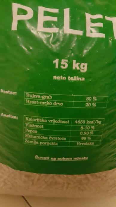 30 vreća peleta po 15kg, 25kn po vreći, sastav vidljiv na slici