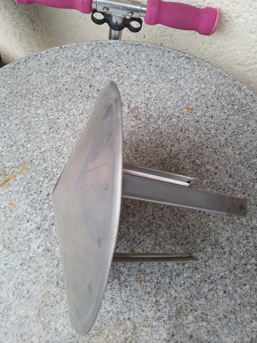 Zbog izmjene dimnog odvoda , meni više nepotreban poklopac dimnjaka izrađen od nehrđajućeg materijala , .... samo 15 E!!!