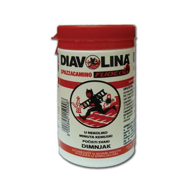 Prah za čišćenje ložišta kotlova, kamina i dimnjaka. Diavolina proizvodi brzo i lako uklanjaju čađu i smolu nakupljenu u ložištima kotlova, peći i kamina te u dimnjacima.