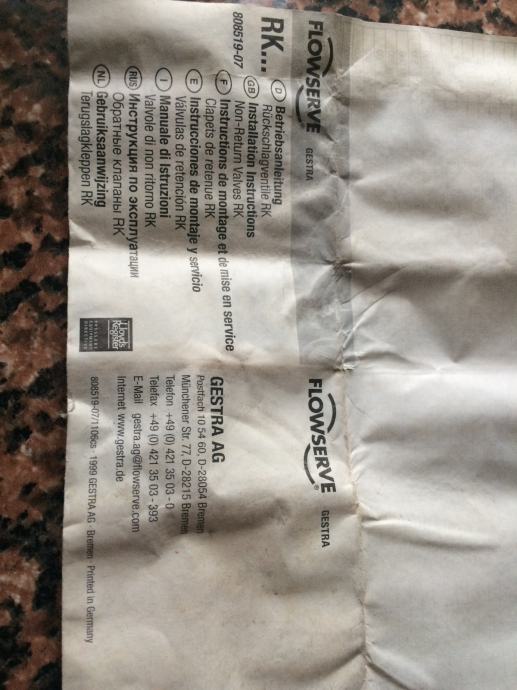 Prodajem protupovratni ventil GESTRA,