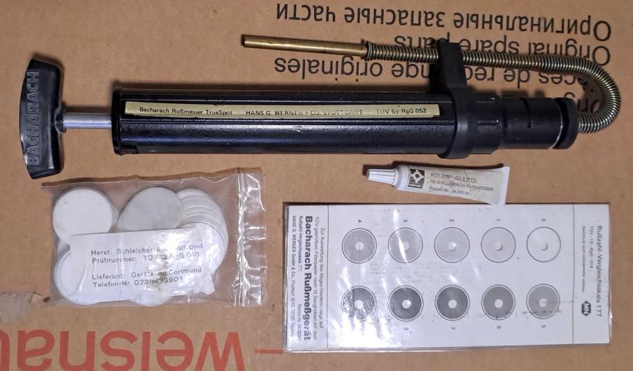 U kompletu sa pumpom je i filter papir za mjerenje, mast za cilindar pumpe i skala za određivanje dimnog broja.
