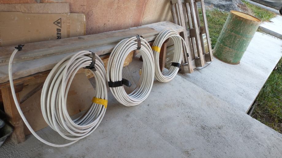 -PEX cijevi za podno grijanje, ostaci od montaže, debljine FI 16 mm. Od toga imaju 3 koluta, svaki po cca 40 metara, i 5 koluta koji su kraći (otprilike 20 metara). Cijevi su ispravne.