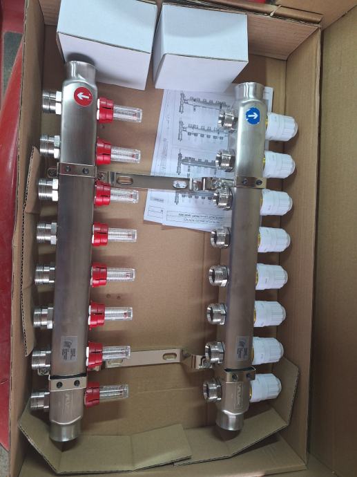 Razdjelnik Valvex INOX K5 - 8 krugova, s ventilima, topmetrima i sigurnosnim setom (podno grijanje)
