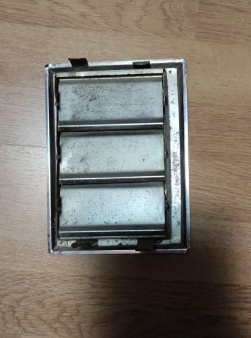Rešetka za ventilaciju inox dimenzije 14,5 širine i 19,5 visine za otvor 10,5 širine i 16,00 visine . Ima dva položaja za otvaranje i može se koristiti visoko u prostorijama jer ima ručicu za otvaranje i zatvaranje na potez.
