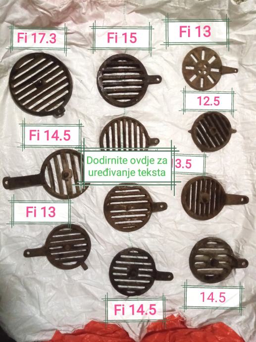 Rešetka za ložište prva slika fi 14., 15, 14.5, donji red sa Lj 15, 12.5, 15, jedan kom 9 eura
