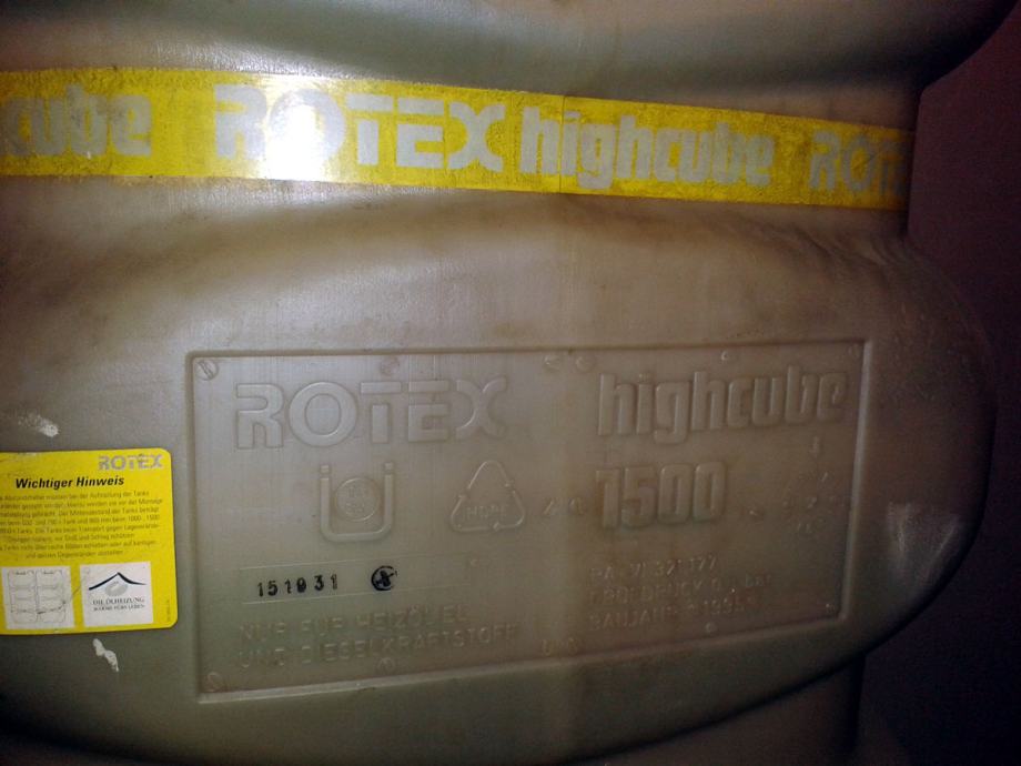Prodajem rabljenu cisternu ROTEX High Cube kapaciteta 1.500 litara (78 x 134 x 192 cm). Cisterna ima alu nosače, te instalirane dovod/odvod pl. cijevi za paralelno spajanje tankova (donedavno je bila spojena na sustav centralnog grijanja).
