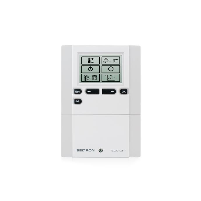 Seltron PROMATIC SGC16H je moderan i snažan regulator osmišljen za jednostavnije solarne sustave i sustave grijanja. PROMATIC SGC solarni regulatori reguliraju brzinu solarne cirkulacijske pumpe i održavaju temperaturnu razliku između solarnih panela i spremnika za potrošnu toplu vodu konstantnom. Na taj se način postiže maksimalna učinkovitost solarnih sustava uz izbor 5 različitih hidrauličkih shema. Integrirani paket Seltron Simplicity regulatoru daje jedinstvenost i jednostavnosti pri pokretanju i uporabi. Podrška na 14 jezika, simulacija temperaturnih senzora, grafički prikaz izmjerenih temperatura i dobivena energija korisniku osiguravaju još bolju udobnost i nadzor solarnog sustava. Veliki osvijetljeni grafički zaslon osigurava jasan prikaz rada sustava i svih drugih podataka. Osnovne funkcije: Čarobnjak za postavljanje - regulator vas vodi kroz 2 koraka prvog pokretanja - svi su ostali parametri prethodno podešeni Simulacijski program je posebna funkcija koja omogućuje simulaciju temperaturnih senzora i time omogućuje korisniku da testira rad sustava Jednostavan i brz pristup brzim izbornicima, obavijestima, upozorenjima, softverskim verzijama itd.