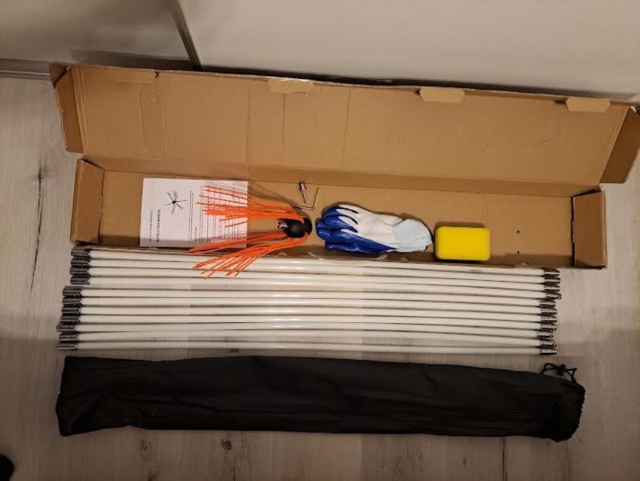 Info na telefon 066 772-644 T set za čiščenje dimnjaka 12 metara .Vrtljiva četka preko palice priklopi na bušilicu .dodajte palice koje se sastavljaju sa brzom spojnicom do odgovarajuće dužine dimnjaka .palice su fleksibilne savijaju se.dimnjak čistite ispod na gore.tako da nije potrebno penjanje po krovovima, u kompletu 12 palica ( 12metara) fleksibilnih palica , četka sa laksom 1 komada ,nastavak za bušilicu ,rukavice,etui i spužva ,ključ imbus info inboxs na tel 00386 40426183 emajl jovan.dejo@gmail.com Šaljem po brzoj pošti GLS poštarina 20 evr po celoj Hrvatskoj plaćanje pouzećem ,poštarinu plaća kupac .Možete pogledati na youtube na linku https://www.youtube.com/watch?v=CsEmsYCh-5s