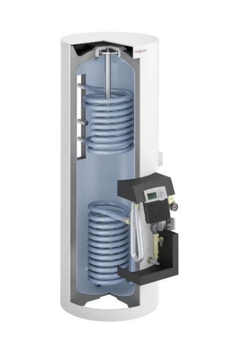 * Bivalentni spremnik Vitocell 100-B/-W volumena 250 litara, tip CVBA, s integriranom pumpnom stanicom Solar-Divicon uključujući visokoučinkovitu cirkulacijsku crpku, solarnu regulaciju Vitosolic 100, tip SD1 i sustav za odvajanje zraka
