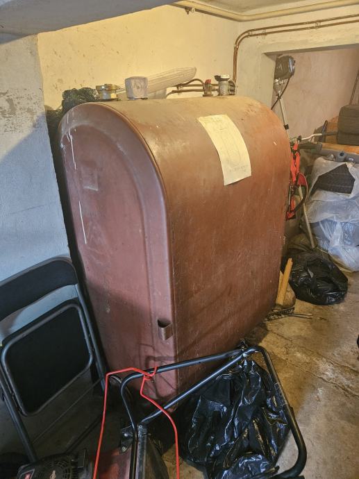 Prodajem spremnik (tank) za naftu, lož ulje. Potrebno iznijeti iz podruma. U njemu ima još nafte (možda 30ak litara). Neispravan pokazivač razine.