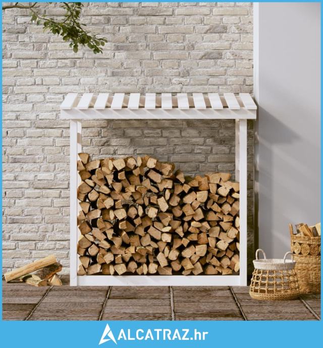 Stalak za drva za ogrjev bijeli 108x64,5x110 masivna borovina - NOVO