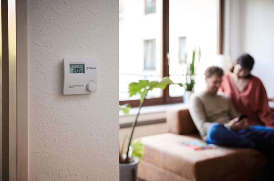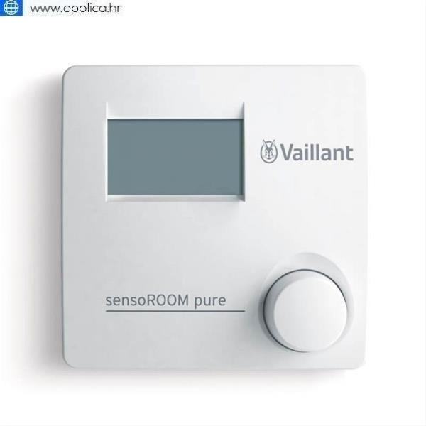 VAILLANT TER.sensoROOM pure VRT 50/2. Digitalni sobni termostat VRT 50 upravlja plinskim uređajem u ovisnosti od sobne temperature. Mali LC displej s prikazom aktualne sobne temperature te rukovanje na načelu „okreni&klikni“ tehnologije pruža korisniku koncept jednostavnog odabira željene sobne temperature. VRT 50 primjenjuje se u kombinaciji s novom generacijom uređaja s eBUS elektronskom pločom. Dodatno se putem ovoga termostata može uključivati funkcija „toplog starta“.