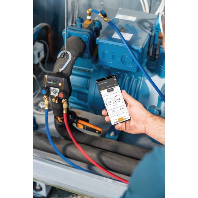 Digitalni manometar kojim upravlja aplikacija testo 550i s Bluetooth,dvosmjernim blokom ventila i čvrstom kukom nudi opsežnu mjernu tehnologiju u izuzetno kompaktnom formatu. Koristite ovaj izuzetno robusni manometar za bežično obavljanje svakodnevnog posla na rashladnim i klimatizacijskim sustavima i toplinskim pumpama, s lakoćom i pouzdanošću. Svi koji koriste testo Smart aplikaciju na pametnom telefonu ili tabletu. - Sve aktivnosti, od mjerenja do dokumentiranja, pomoću testo Smart aplikacije na pametnom telefonu - Najmanji digitalni manometar na tržištu - Maksimalna pouzdanost zahvaljujući izuzetno robusnom kućištu s razredom zaštite IP54 - Dodatna mogućnost proširenja s testo pametnim sondama za bežično mjerenje temperature, vlage i vakuuma Od samog mjerenja do dokumentiranja – zahvaljujući aplikaciji, možete svakodnevno raditi na servisiranju i održavanju na pametnom telefonu ili tabletu. Digitalni manometar testo 550i opremljen je Bluetooth tehnologijom, dvosmjernim blokom ventila i čvrstom kukom, a može se u potpunosti kontrolirati putem aplikacije i pametnog telefona ili tableta –za fleksibilna, brza mjerenja i digitalno dokumentiranje. - Za izvođenje izuzetno brzih i jednostavnih mjerenja na rashladnim i klimatizacijskim sustavi i toplinskim pumpama - Testo Smart aplikacija: Potpuno kontrolirajte svoje zadatke servisiranja i održavanja putem aplikacije i pametnog telefona ili tableta, uživajte u jasno predstavljenim rezultatima i digitalnoj dokumentaciji, postavite svoje favorite i uvijek imajte najnovija rashladna sredstva - Maksimalna pouzdanost i praktično rukovanje u teško dostupnim okruženjima zahvaljujući izuzetno kompaktnom, izuzetno robusnom kućištu s razredom zaštite IP54 - Maksimalna fleksibilnost za bežični rad: Bluetooth sonde za mjere temperature, tlaka i važnosti automatski se povezuju s mjernim instrumentom putem testo Smart aplikacije - Kontinuirano visoke performanse u svim uvjetima: Možete se osloniti na ovaj manometar tvrtke Testo – on kombinira provjerenu Testo kvalitetu i izvrsnu robusnost Kontroliran aplikacijom