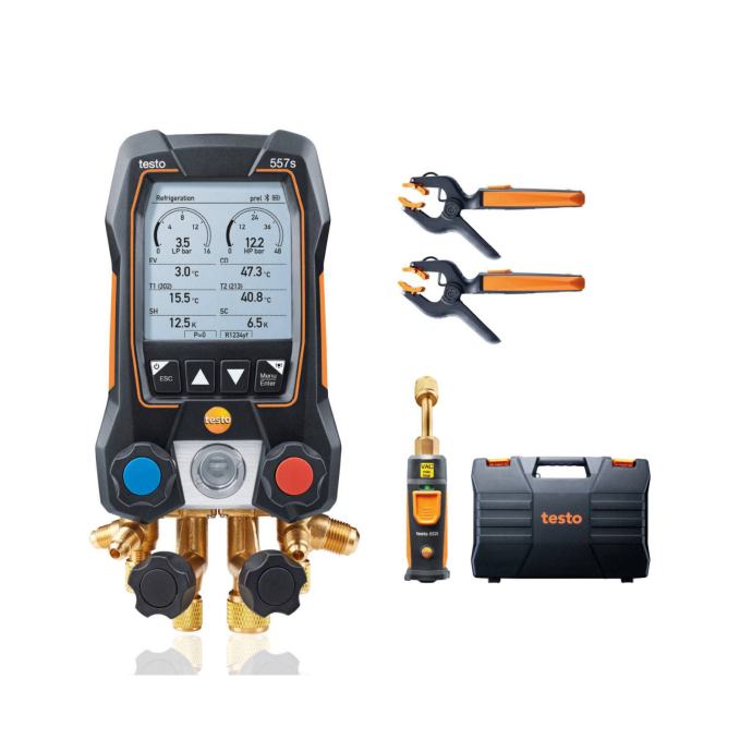 Odmah započnite svoja bežična mjerenja na rashladnim i klimatizacijskim sustavima i toplinskim pumpama. Zahvaljujući isporučenoj Bluetooth vakuumskoj sondi, čak možete mjeriti i vakuum bez ikakvih kabela ili crijeva. Dobit ćete pametni digitalni manometar testo 557s s Bluetoothom tehnologijom i četverosmjernim blokom ventila, jednu bežičnu vakuumsku sondu testo 552i (Bluetooth), dva bežična stezna termometra testo 115i (Bluetooth, NTC) i robusni transportni kovčeg. Za ostala bežična mjerenja idealne su i druge opcionalne testo pametne sonde. - Potpuno bežična mjerenja i svi rezultati na prvi pogled: zahvaljujući Bluetooth sondama i velikom grafičkom zaslonu - Izuzetno kompaktan i pouzdan zahvaljujući robusnom kućištu s jednostavnim rukovanjem s razredom zaštite IP 54 - Jednostavna, bežična, fleksibilna mjerenja i dokumentiranje: Mjerenja temperature i vakuuma putem automatske Bluetooth veze, testo Smart aplikacija za dokumentiranje i još mnogo toga. - U setu: pametni digitalni manometar testo 557s s Bluetooth tehnologijom i 4-smjernim blokom ventila, 1 x testo 552i bežičnom sondom za mjerenje vakuuma (Bluetooth, NTC), 2 x testo 115i bežične sonde za cijevi (Bluetooth, NTC), kovčeg