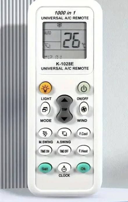 Univerzalni daljinski upravljač za klima uređaje. Kompatibilan sa stotinama marki i modela. Jednostavna kontrola temperature i ušteda energije. Osvjetljenje na tipkovnici i displeju.