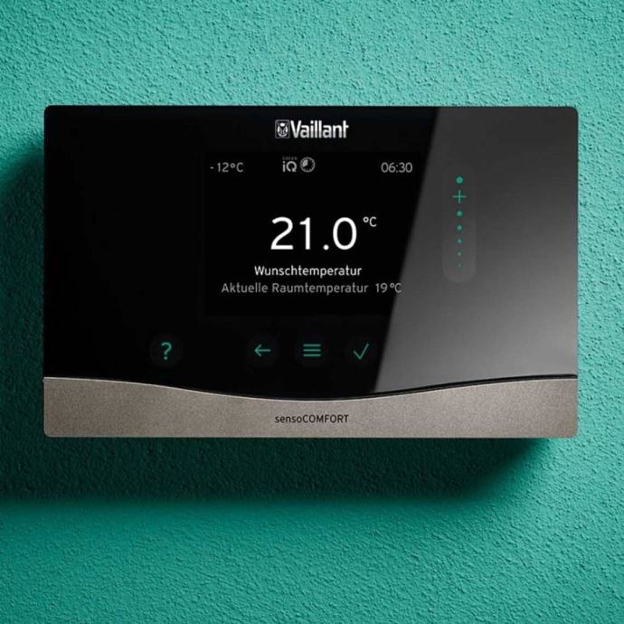 Zahvaljujući novom zaslonu visoke razlučivosti rukovanje je jednostavnije nego ikad prije. Praktičan zaslon i tipke osjetljive na dodir pojednostavljuju interakciju čak i u mračnom prostoru zahvaljujući pozadinskom osvjetljenju. Jasna struktura izbornika i personaliziranog asistenta omogućuju brzo kretanje kroz izbornik i podešavanje. Ukoliko Vam nedostaju pojedine informacije, jednostavno upotrijebite tipku s upitnikom za dodatnu pomoć. Uz našu aplikaciju sensoAPP možete upravljati svojim grijanjem s bilo kojeg mjesta: podesiti točnu temperaturu, odrediti vremenske okvire točno u minutu te upotrijebiti pametne funkcije poput načina rada tijekom odsutnosti ukućana.