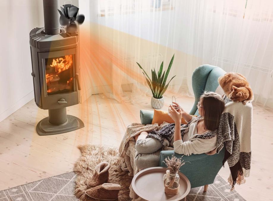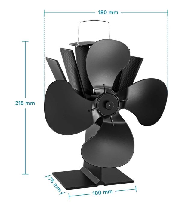 Ventilator ne treba napajati strujom jer se pokreće sam zahvaljujući toplini. Radi se o termoelektričnom ventilatoru koji se stavi na kamin ili peć i stvara rotacijsku energiju kroz temperaturnu razliku između gornjeg i donjeg dijela ventilatora. Počinje se kretati kada se gurne rukom i čim donja strana ventilatora dosegne temperaturu od 70°C. Može se koristiti do maksimalne temperature površine od 350°C.