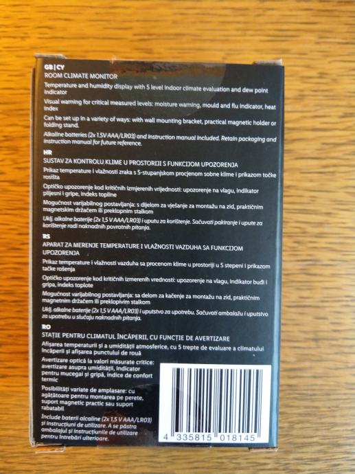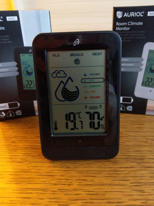 Prikaz temperature i vlažnosti zraka, s 5- stupanjskom procjenom sobne klime i prikazom točke rosišta