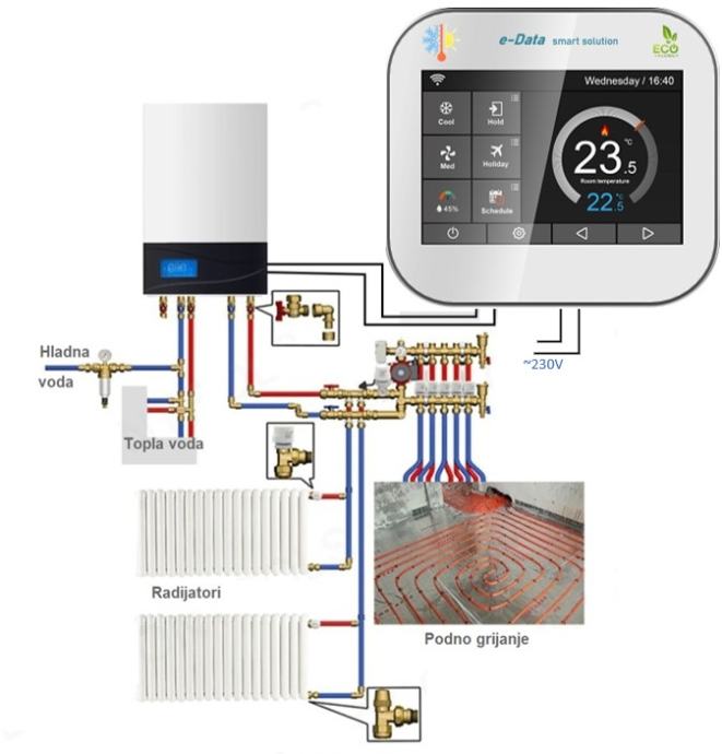 Lijep i prikladan za sve vrste grijanja ili hlađenja. Touch screen ekran u boji, grafičko sučelje, jednostavan za uporabu.