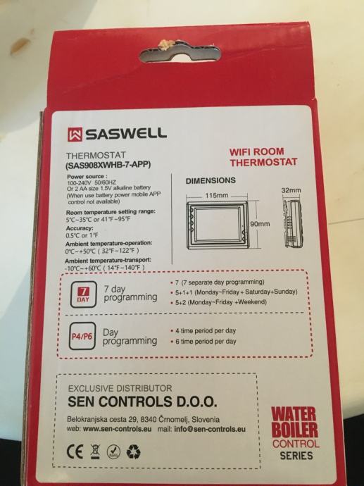 Prodaje se novi wifi žicni termostat saswell za plinske boilere ipeci na pelrte, termostat je novi nekorišten ima garanciju.