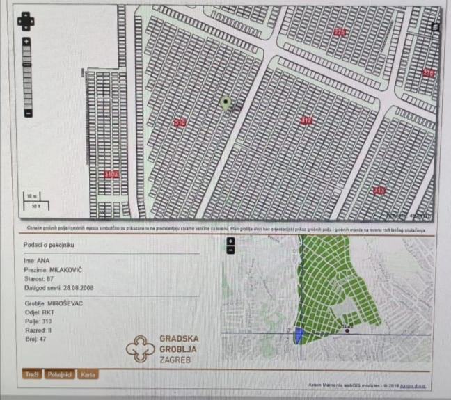 Ustupam grobno mjesto na groblju Miroševac, odjel RKT polje 310, razred II, broj 47.