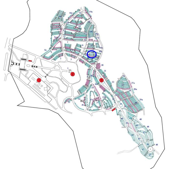 Označen crvenom bojom na priloženoj satelitskoj snimci, odnosno plavom bojom na priloženoj karti.