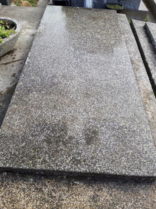 Grobnica imitirana-jednostruka. Dimenzije su š 1,34m x d 2,30m.