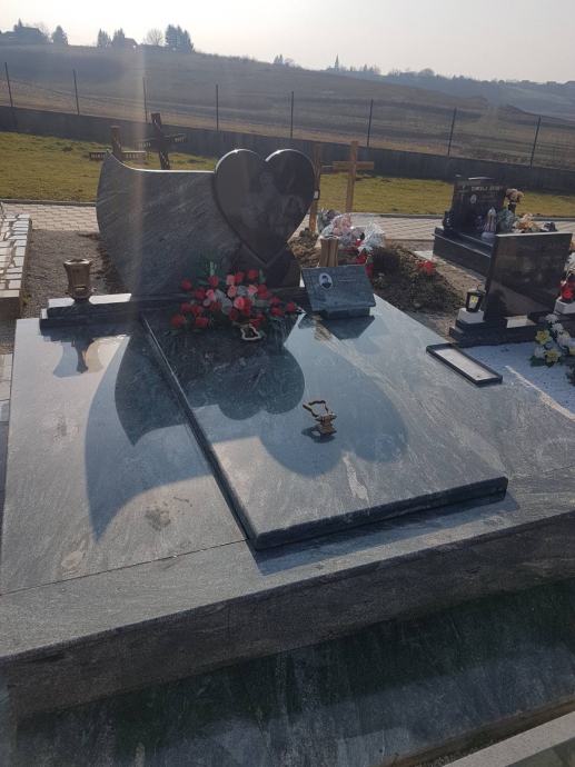 Ustupam betoniranu grobnicu, 2 grobna mjesta oblozena sivim mramorom, poklopac i nadgrobni spomenik od sivog mramora, izbetonirane staze. Na spomeniku su imena, ali grobnica je prazna. Cijena 2700€.