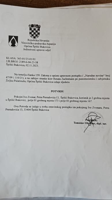 Prodajem grobno mjesto, nalazi se u Špišić Bukovici. Za sve informacije zvati na broj 0049 173 7582693 WhatsApp.