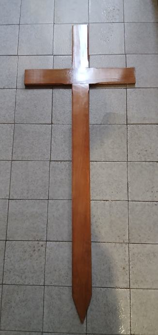 Prodajem drveni nadgrobni križ sa natpisom uključenim u cijenu po želji crnim ili zlatnim slovima .