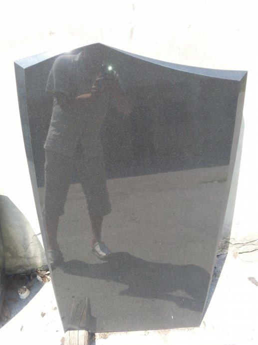 Ploča je 70 cm široka, 110 visoka te 9 cm debela. Modernog je dizajna i kosih rezova te je crne boje i od kvalitetnog je granita .