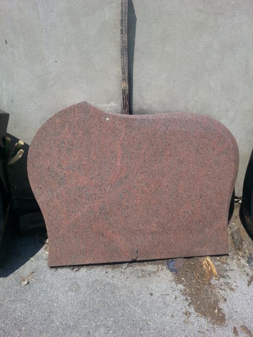 Ploča je od crvenog granita te je modernog izgleda i kosih rezova. Dimenzije su 90 cm širina , 70 cm visina i 8 cm debljina .