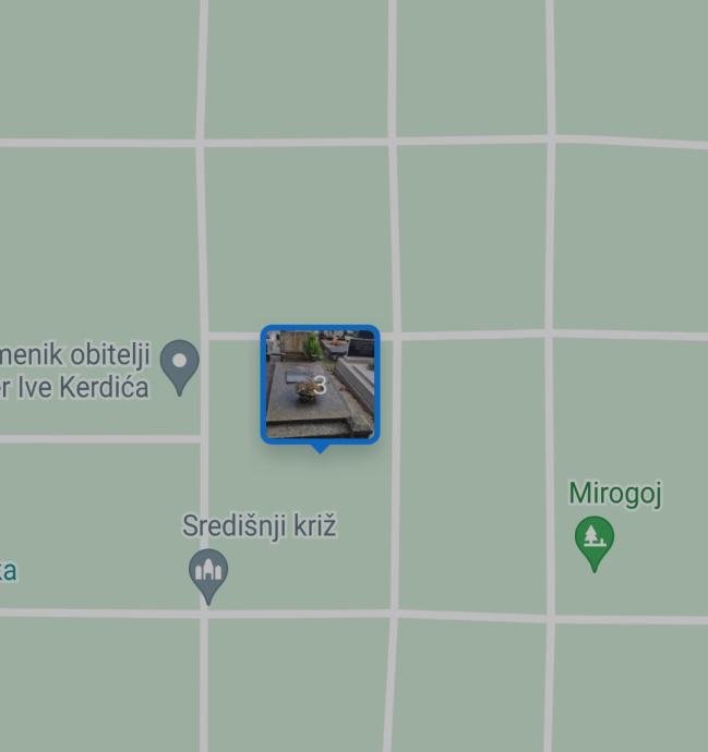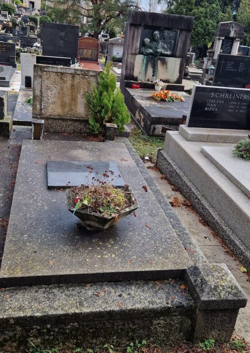 Trajno ustupam pravo korištenja grobnog mjesta na Mirogoju, odjel RKT, polje 13, razred II/I, grob 46. Zadnji ukop 2004.godine.