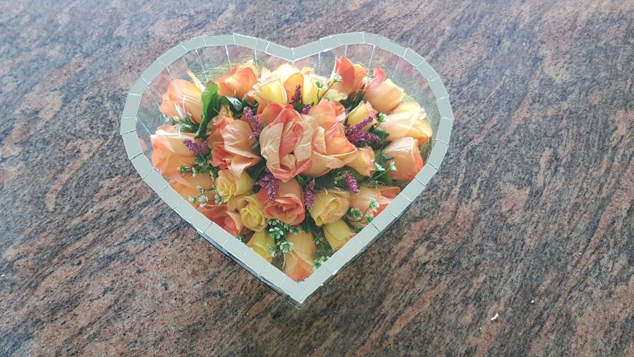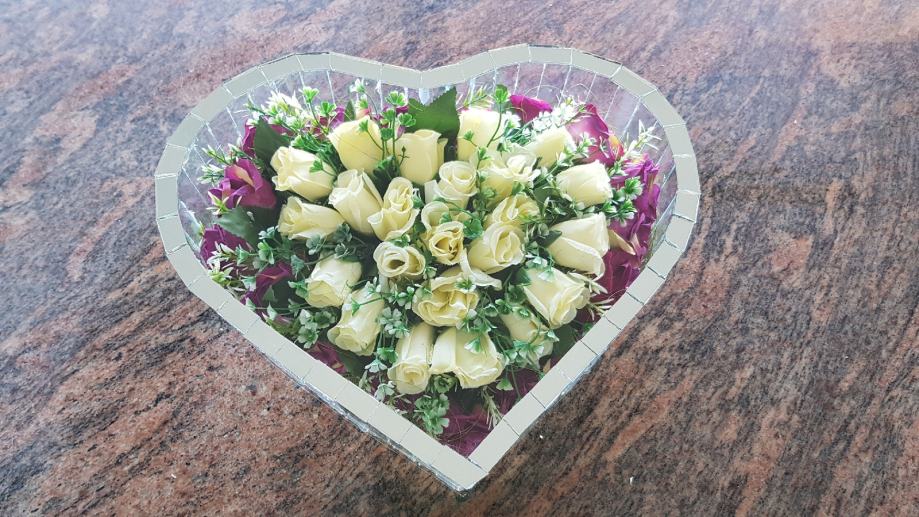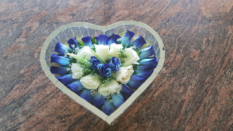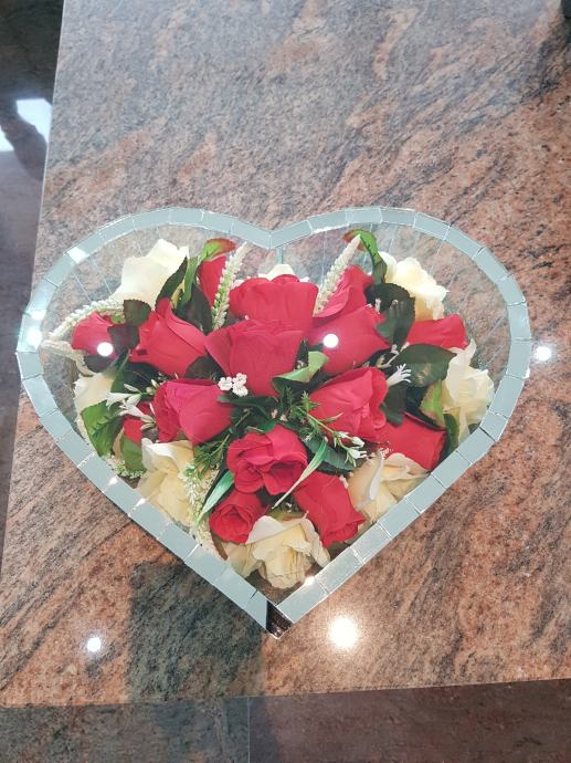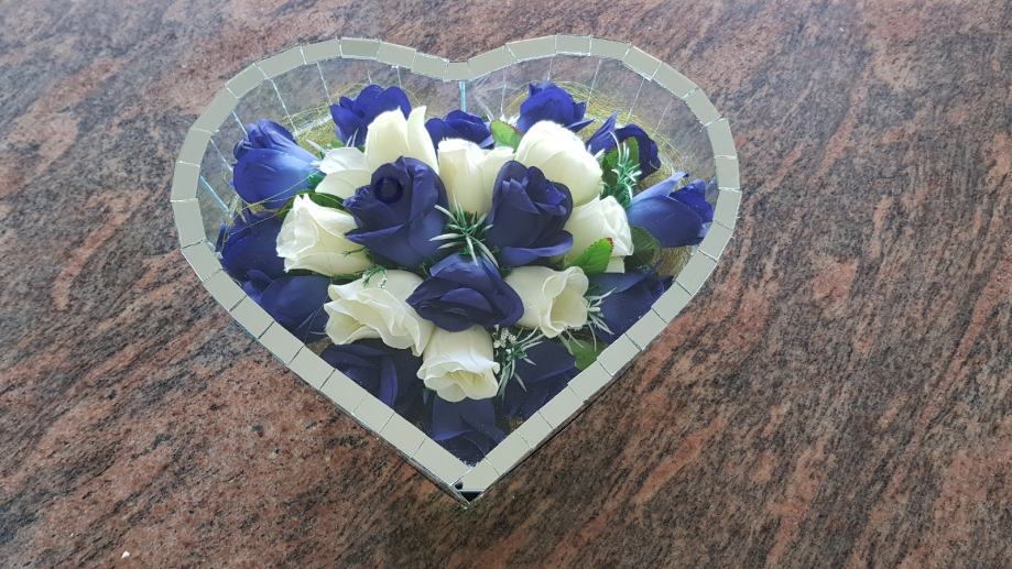 stakleno srce , grobna galanterije ,srce , groblje , aranžman u staklu