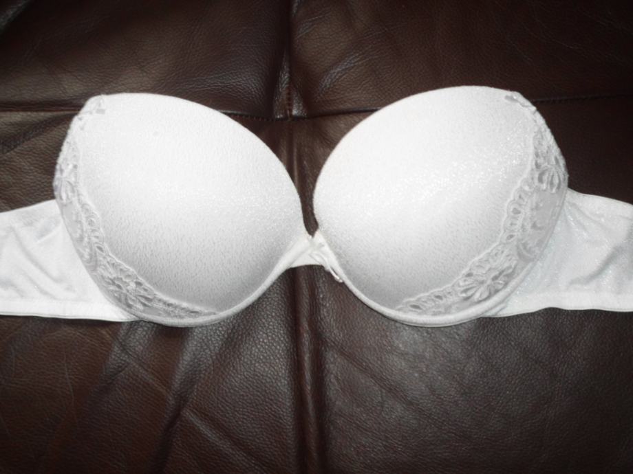 Lisca snježno bijeli grudnjak koji se nosi sa prozirnim naramenicama koji nejdu uz njega ili bez njih.