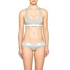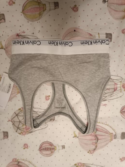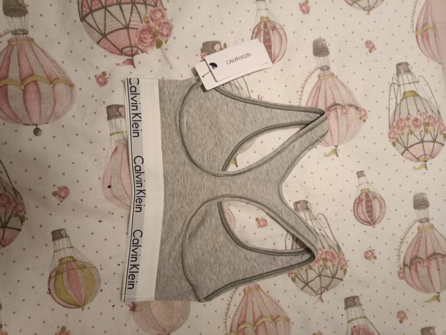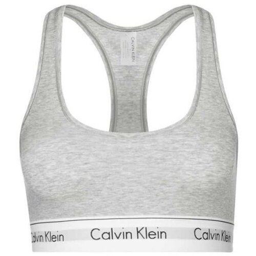 Sivi grudnjak Calvin Klein iz linije Underwear. Stražnji dio sportskog kroja. Donji dio obrubljen elastičnom trakom s nazivom marke. Cijeli opšiven vanjskim šavom.