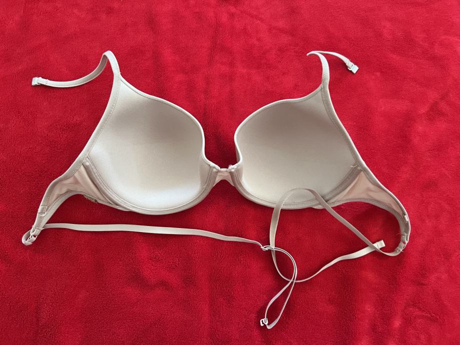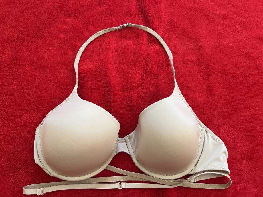 Nošen u jednoj prigodi. Moguće ga je nositi samo oko vrata, nemam drugih naramenica. Odgovara veličini 80 B i 85 C jer se dosta može regulirati širina. Ja sam 80 B/C i mogu ga dva puta omotati oko tijela i zakopčati na sredini. Jako dobro drži, ništa ne strši, može se spustiti skroz do struka tako da je idealan za gola leđa. Nije podstavljen vatom, samo lagano da se ne ocrtava, mekan je.