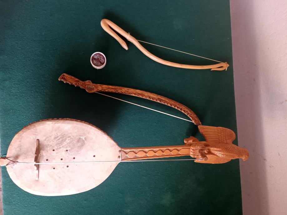Kompletan ručni rad. Jareća koža nategnuta drevnim klinovima. Na instrumentu nema niti jednoga metalnog komada. Violinske strune na guslama i gudalu i spremna za guslenje. Izvrstan i izuzetan rad u duborezu.