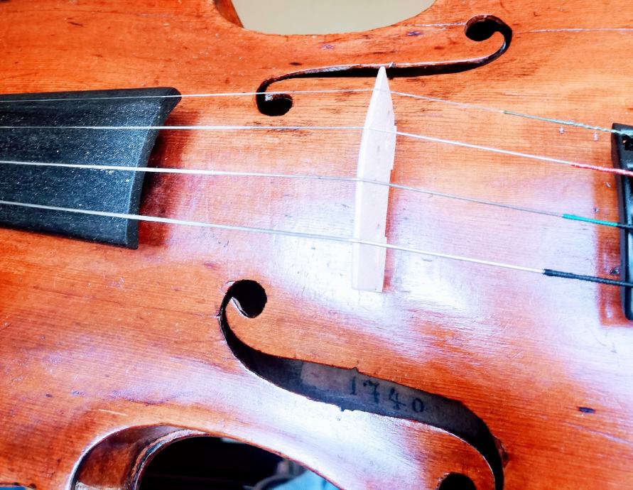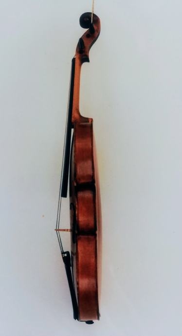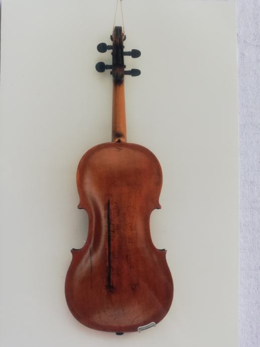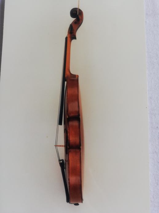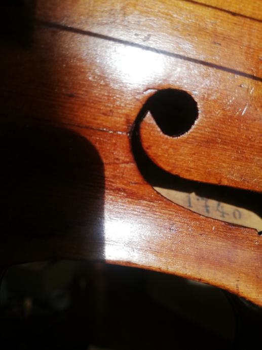 Autentična barokna violina iz 1740 g. Provjerena starost kod Demšara u Ljubljani i u Cremoni, u Scuola internazionale di Liuteria. Odlično izgovara kvinte, flažolete. Ton prodoran čist i homogen u svim registrima. Donja daska je od jednog komada. Pogodna violina i za solističko sviranje. Uz violinu dolazi i čvrsta, elegantna, nova kutija plaćena 2000 kuna i novi komplet Tomastik žica.