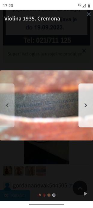 VIOLINA A.Stradivarius Cremona 1935 (ima originalnu naljepnicu izrade), izuzetnog zvuka, zadnja stranica iz jednog dijela, jaaakooo dobra violina za studente glazbene akademije ili konzervatorija