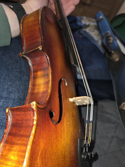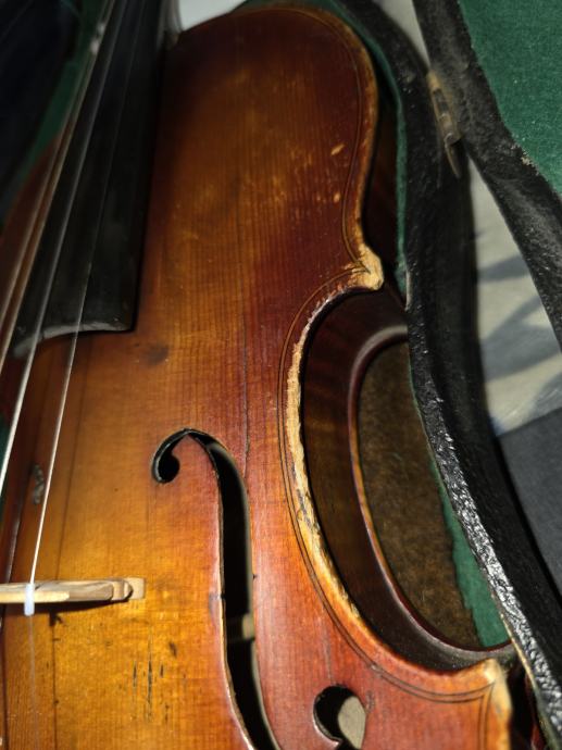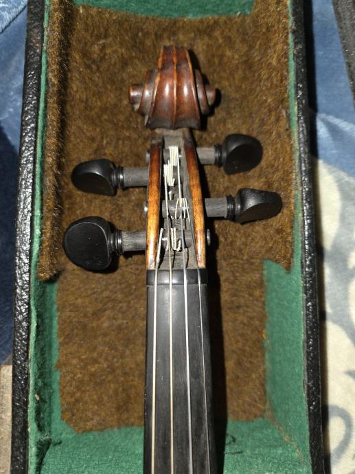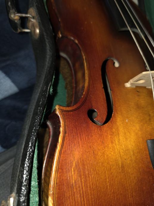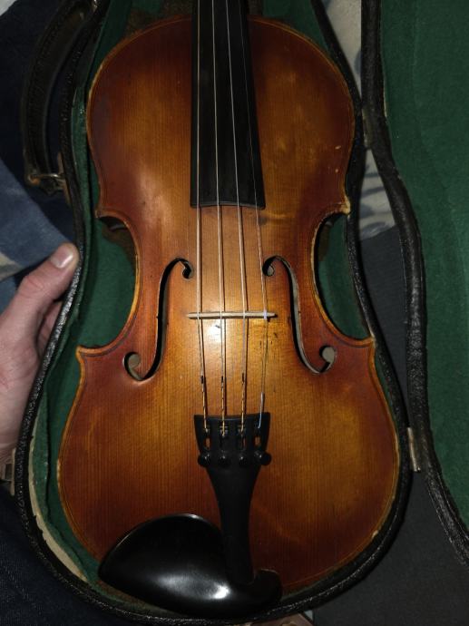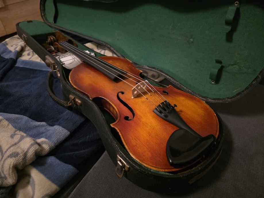 Violina, vjerojatno čehoslovačkog podrijetla. Stara stotinjak godina. Sve je u redu s njom, ima eventualno kozmetičkih popravaka za napraviti.