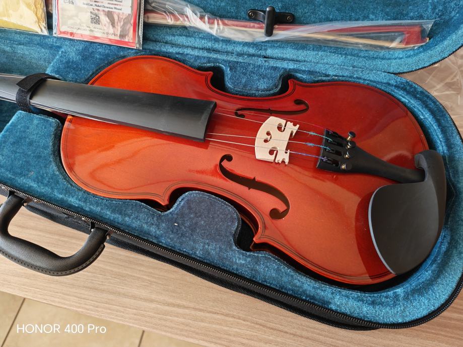 Prodajem potpuno novu violinu, dobivena pod račun. Ne razumijem se u violine, ako nekome treba za ukras ili za početno sviranje, pogledajte slike, dolazi sa koferom i dodacima. Cijena 139 eura. Zagreb Dubrava osobno preuzimanje ili slanje poštom dostava 13 eura. Violina 4/4, informacije na 091 303 9093