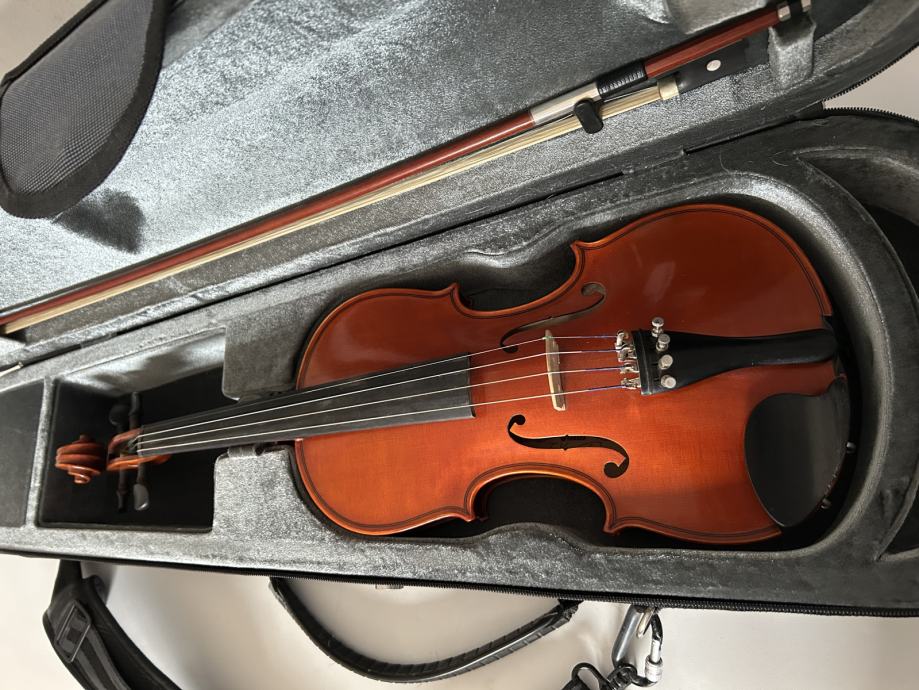 Violina je u vrlo dobrom stanju. Nema oštećenja. Gudalo i kufer uz violinu.