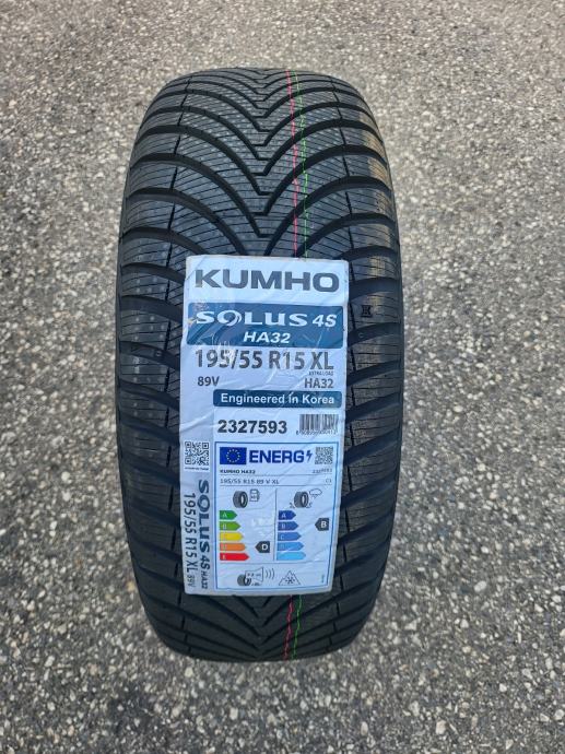 Nove cjelogodišnje gume Kumho Solus HA32, dimenzije 195/55/15. Gume su nove s naljepnicama, potpuno novi model gume, nikad montirane na vozilo, svježi DOT. Mogućnost montaže. Cijena po komadu 78 eura..