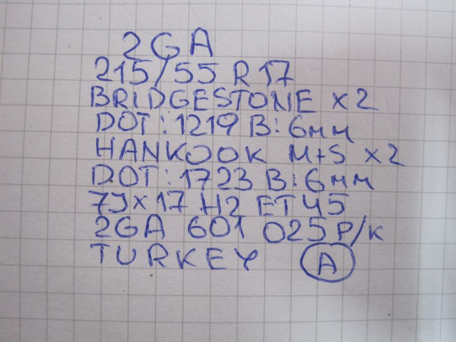 Gume cjelogodišnje Bridgestone 215/55/17 4 kom. VW T ROC 2GA FELGE GUM