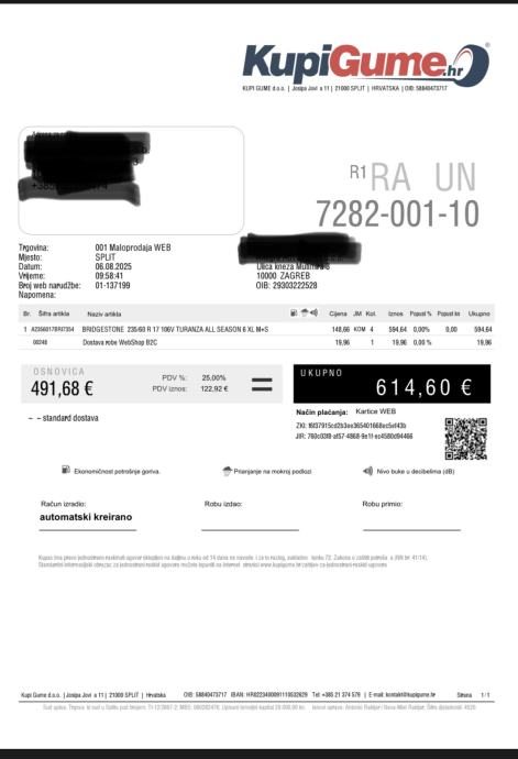 Račun je među slikama, kupljene za 148,66/kom prodajem za 130/kom