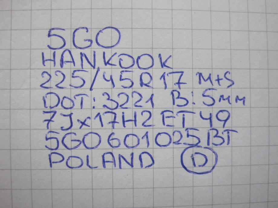 Gume cjelogodišnje Hankook 225/45/17 4 kom. VW GOLF VII 5G0 FELGE SA