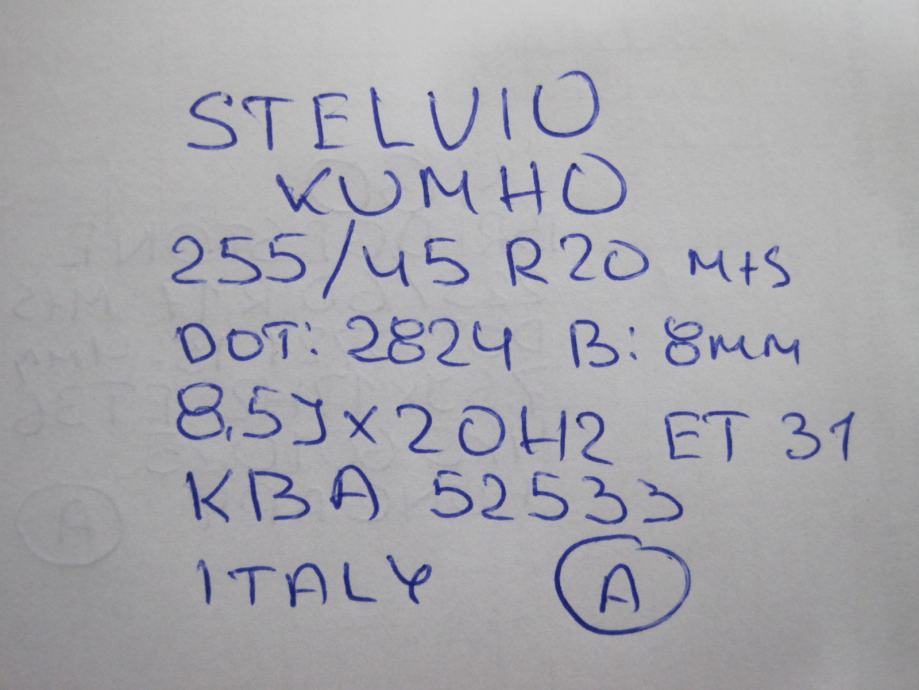 Gume cjelogodišnje Kumho 255/45/20 5 kom.ALFA ROMEO STELVIO FELGE GUMA