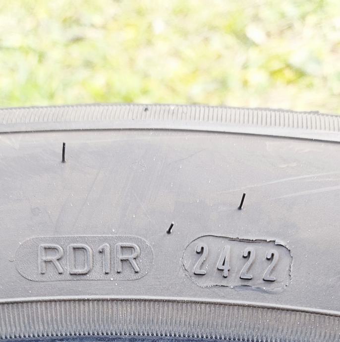 DOT 2422, JOŠ 70% PROFILA. Jedna guma je krpljena.