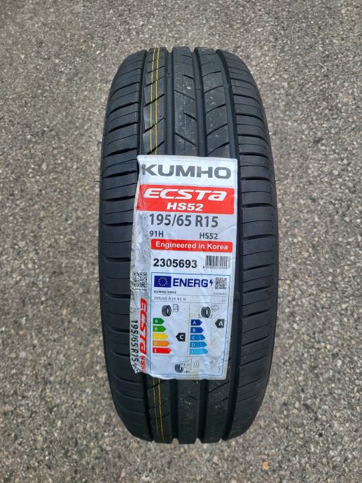 Nove ljetne gume Kumho Ecsta HS52, dimenzije 195/65/15, super guma po akcijskoj cijeni, vrhunska po svim testovima. Gume su nove s naljepnicama, nikad montirane na vozilo, svježi DOT. Mogućnost montaže. Cijena po komadu 47 eura.